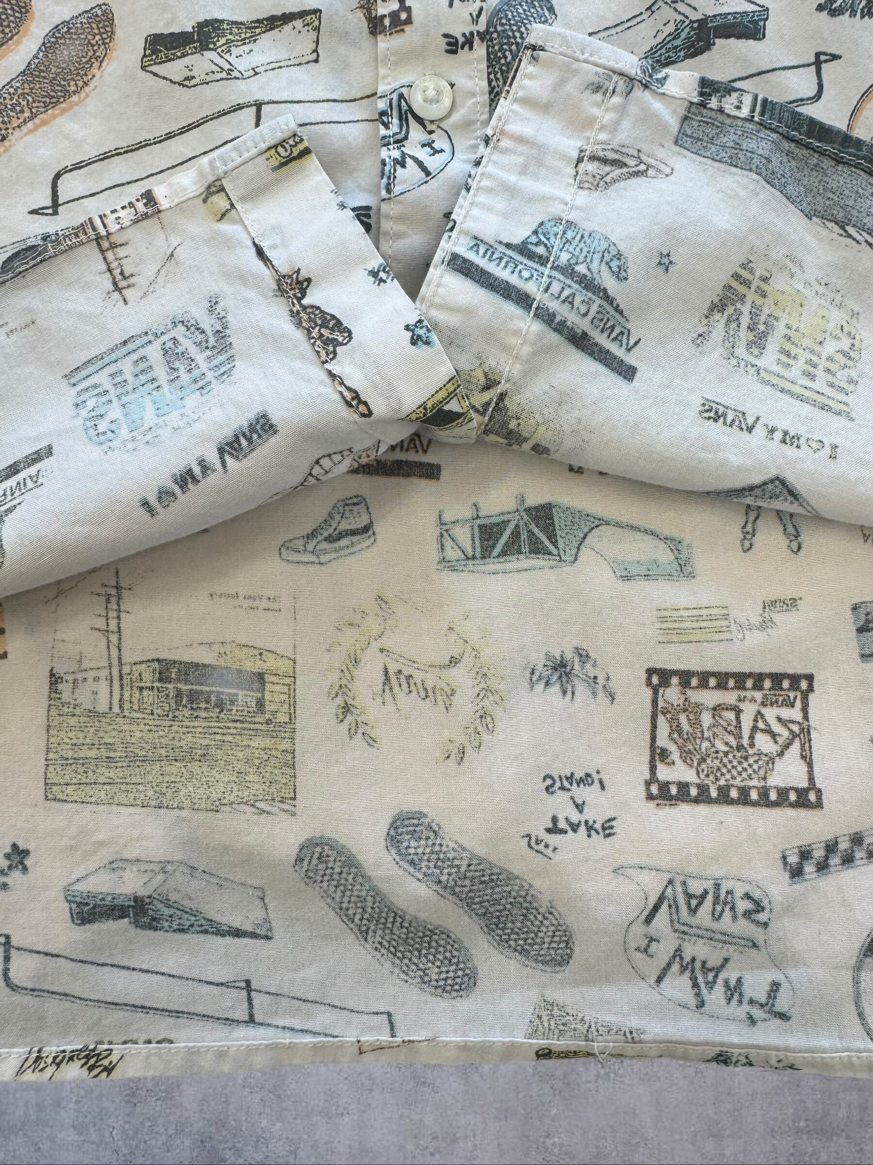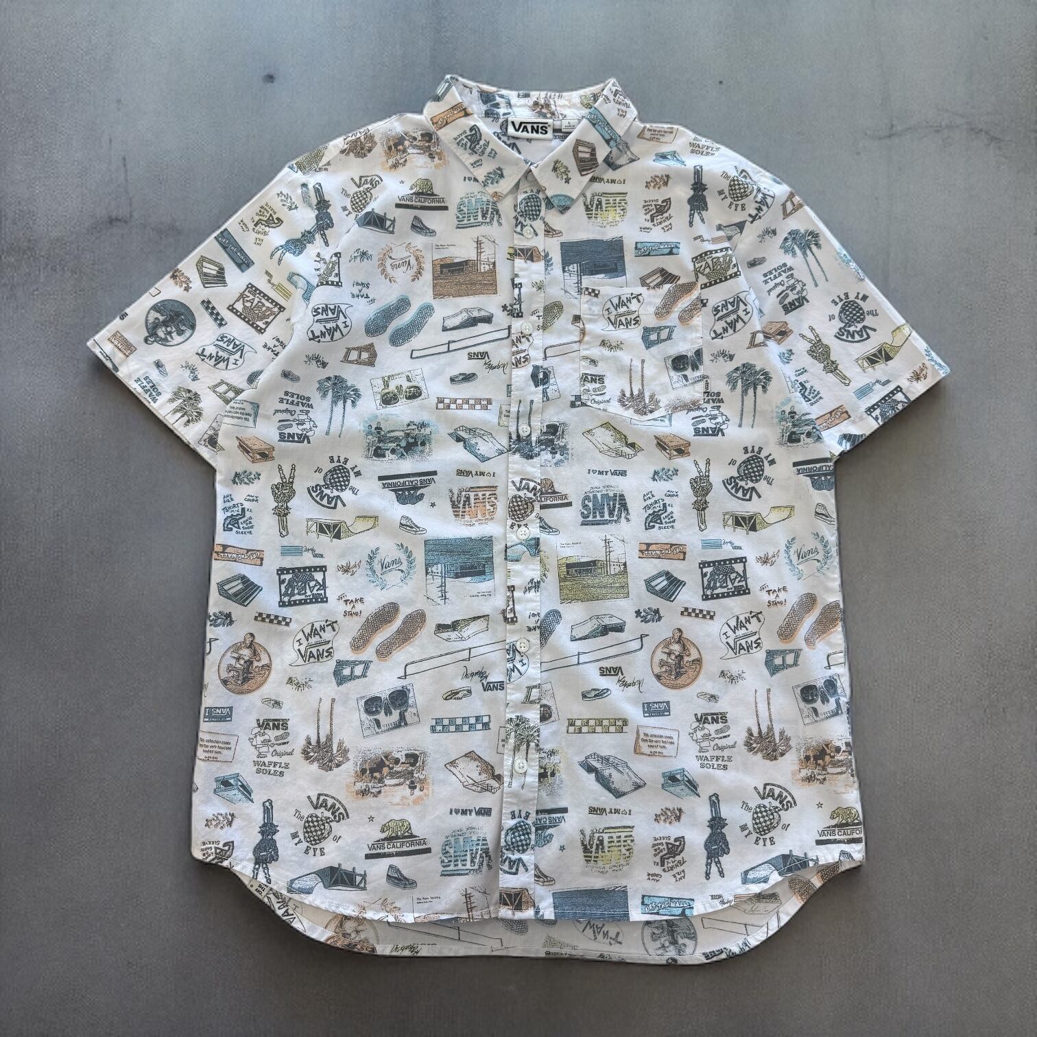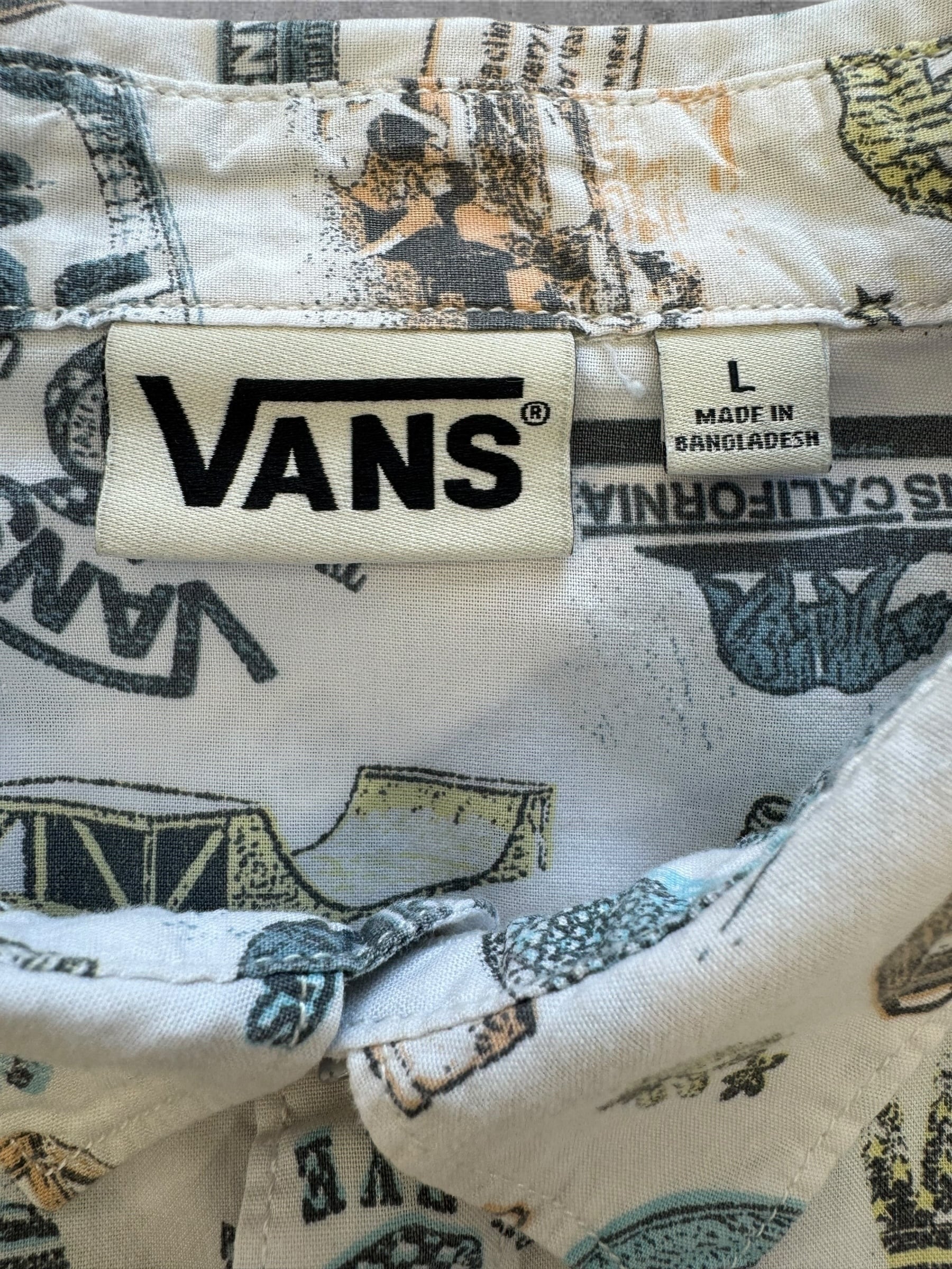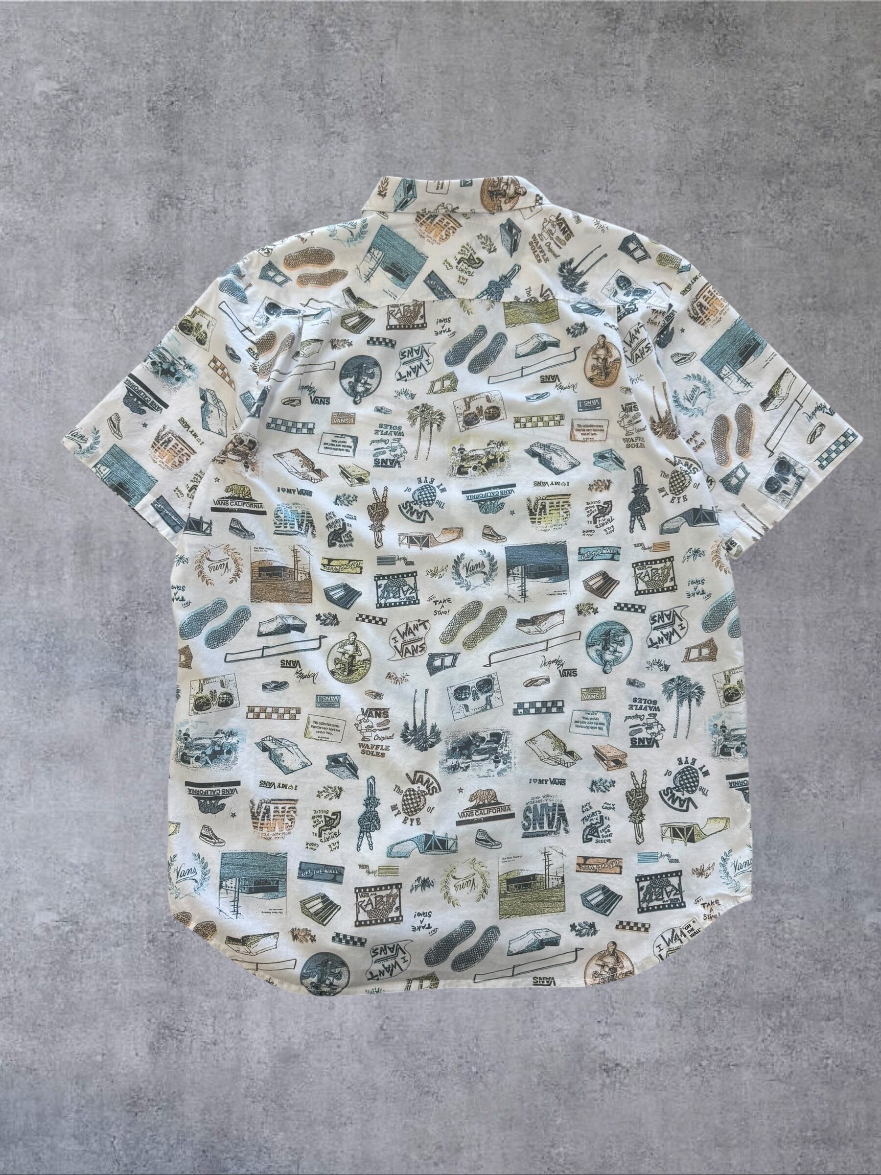 VANS 半袖総柄シャツ 白 Lサイズ