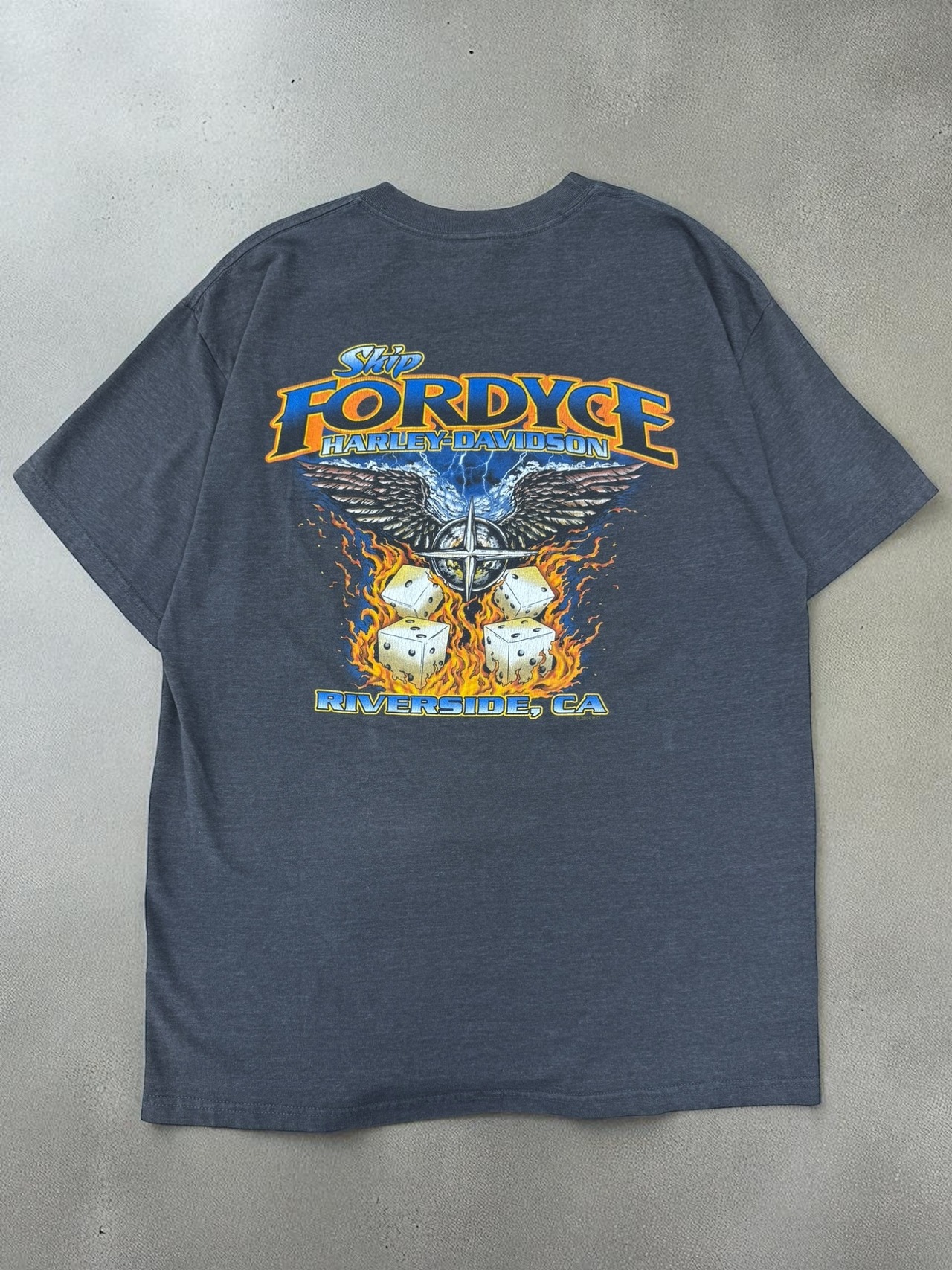 カリフォルニア州リバーサイドのディーラー「Skip Fordyce」のアイテムで、ご当地Tシャツとしても希少な一枚。ボディはHanesのBEEFY-Tで、ヘビーウェイトな質感が古着ならではの風合いを醸し出しています。