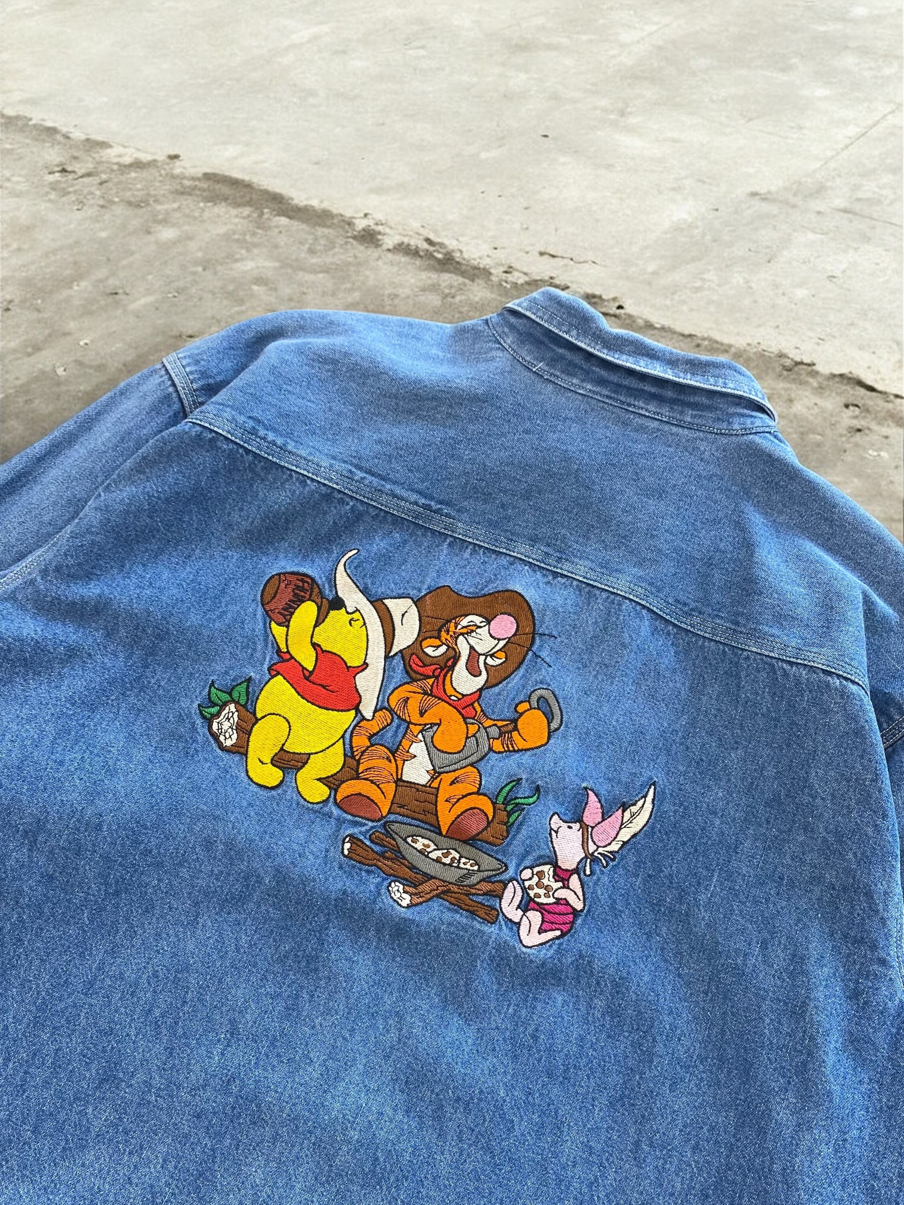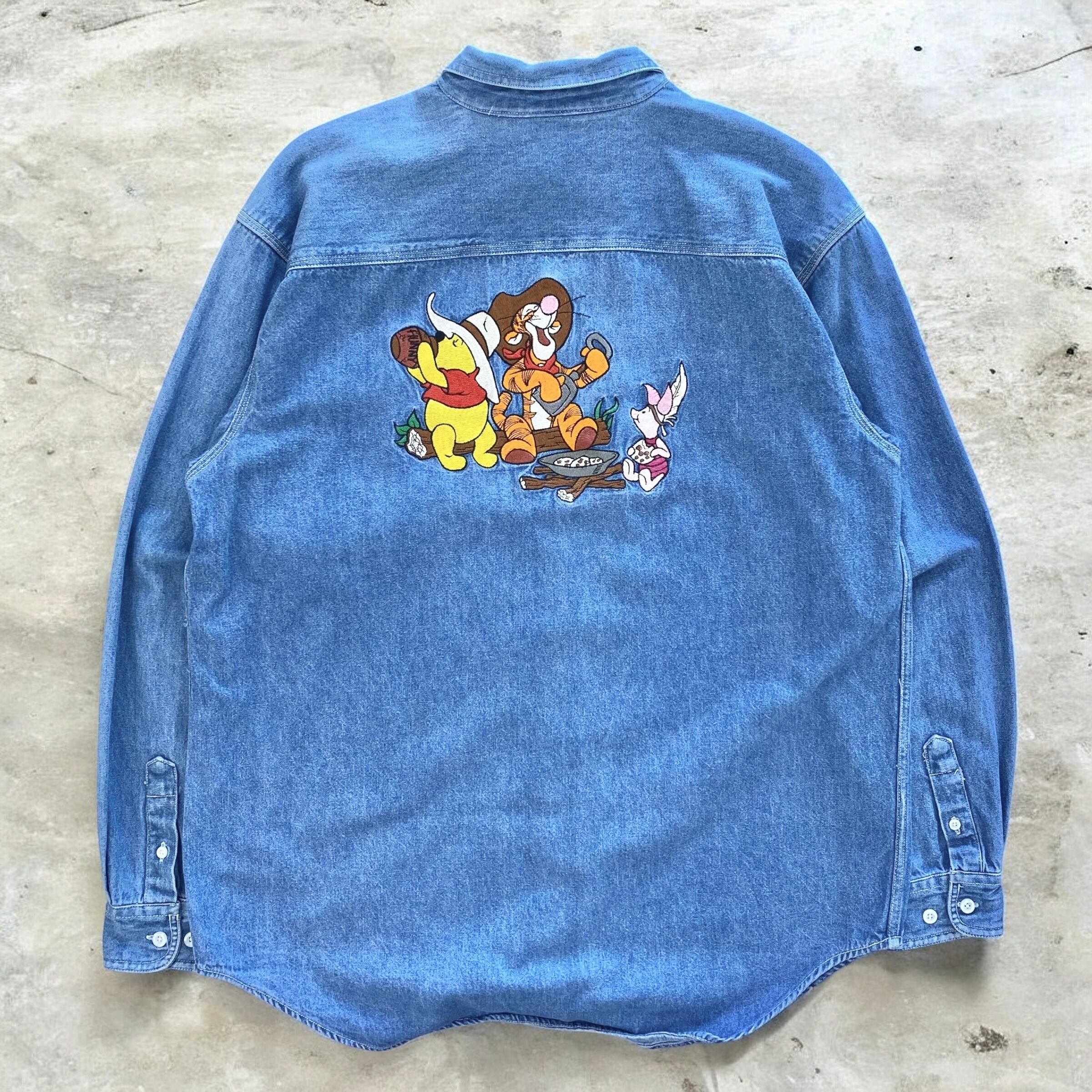 THE Disney STORE ディズニー くまのプーさん ティガー ピグレット デニムシャツ 長袖シャツ キャラクター ヴィンテージ 90年代 アメカジ