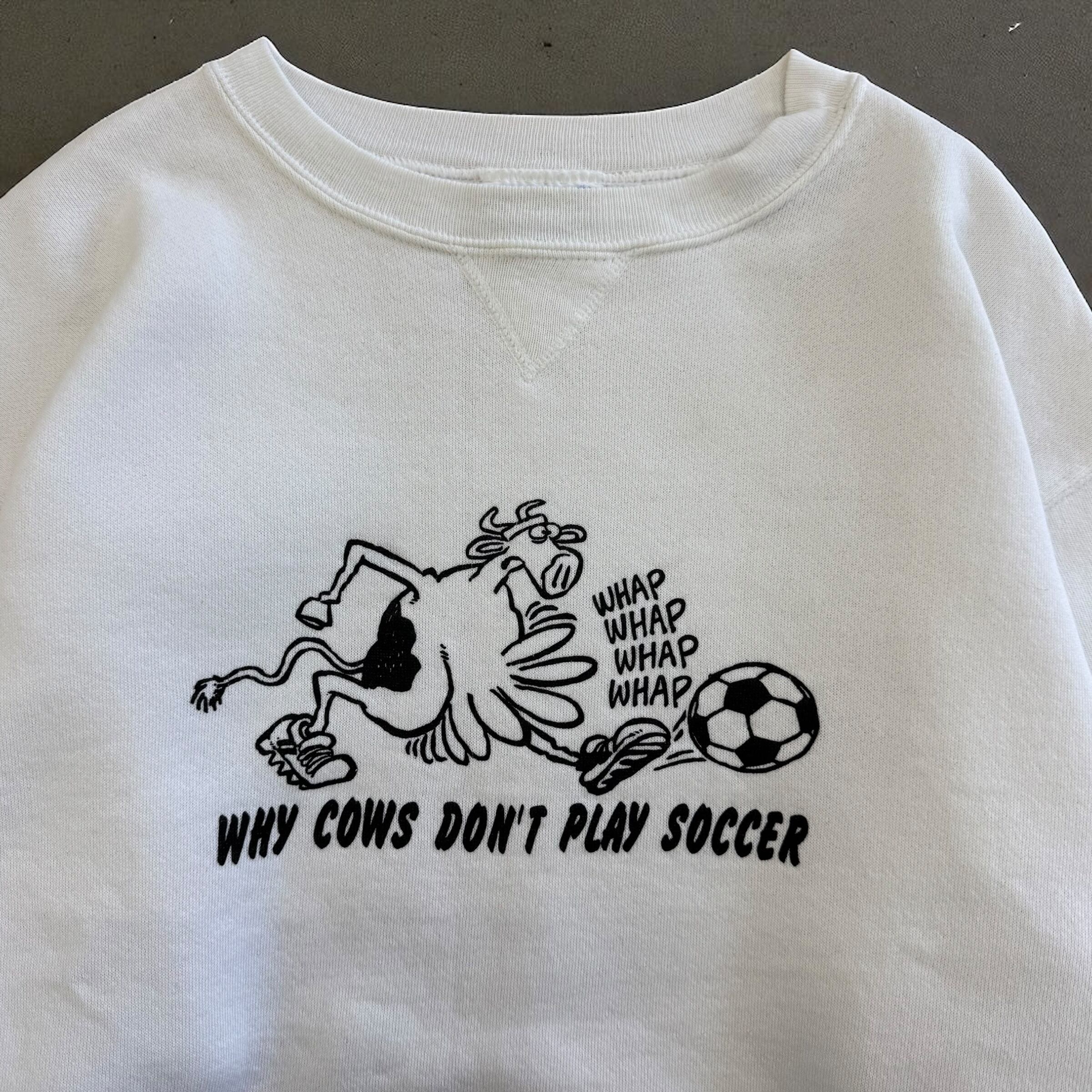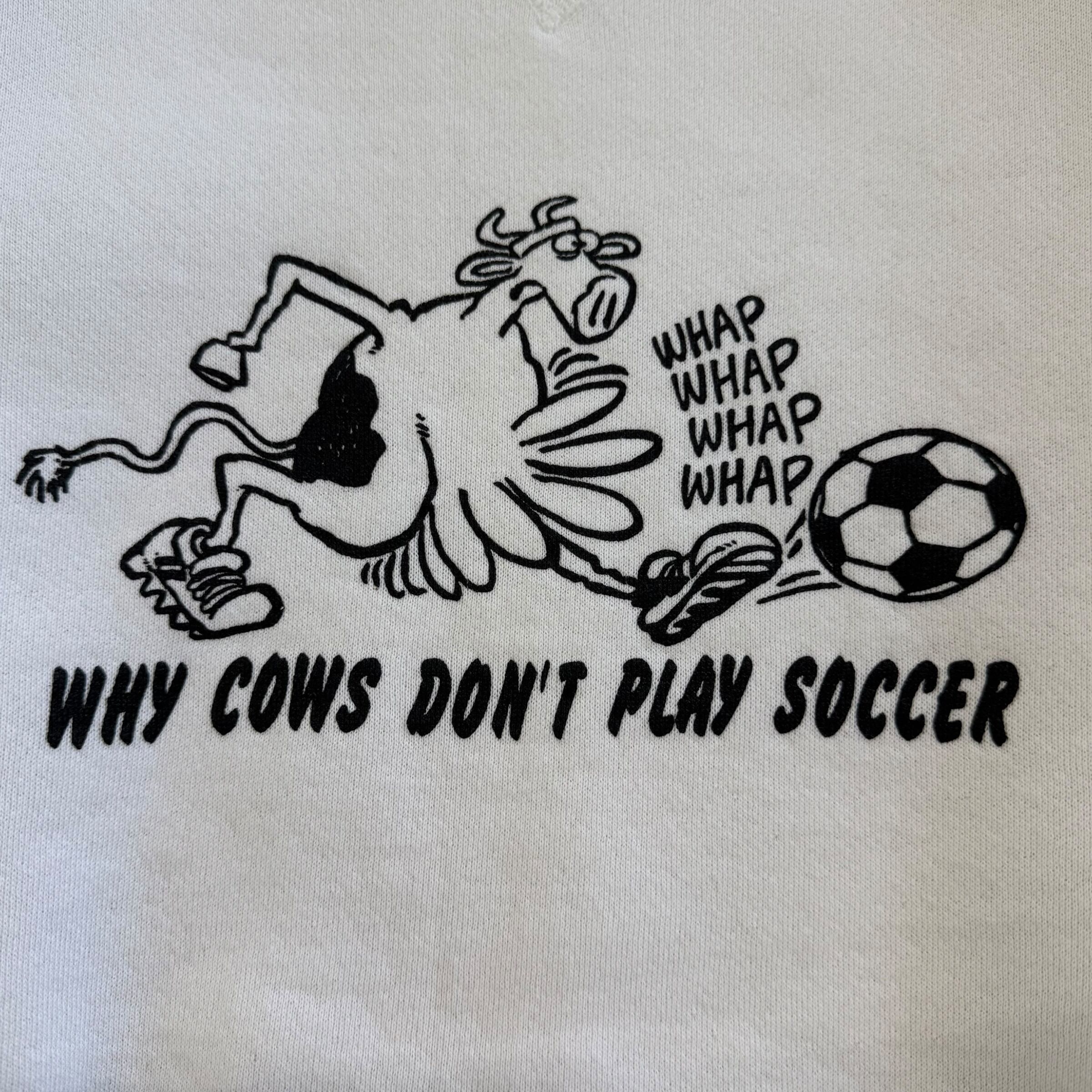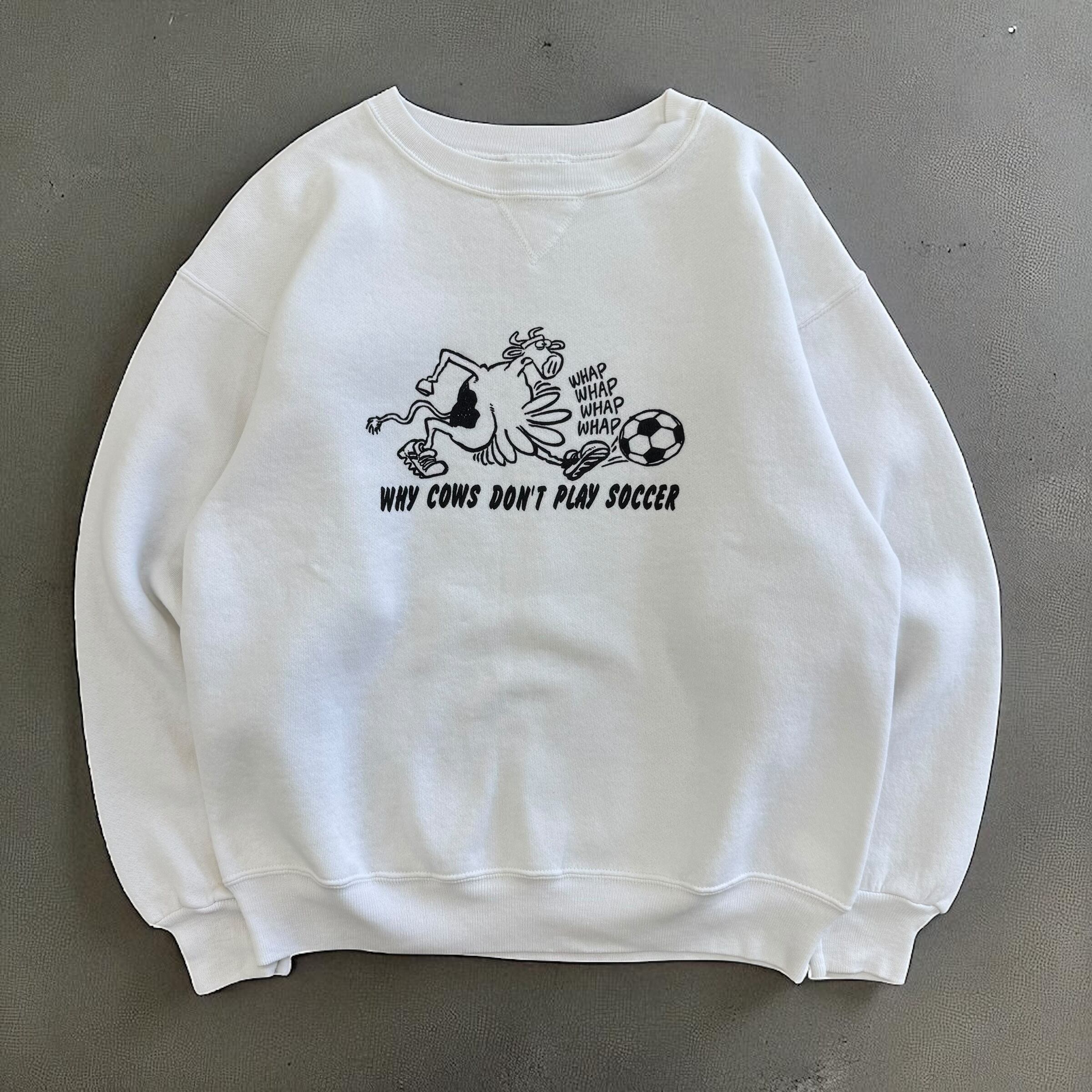 USA製 Hanes WHY COWS DON'T PLAY SOCCER プリントスウェット 白 Lサイズ
