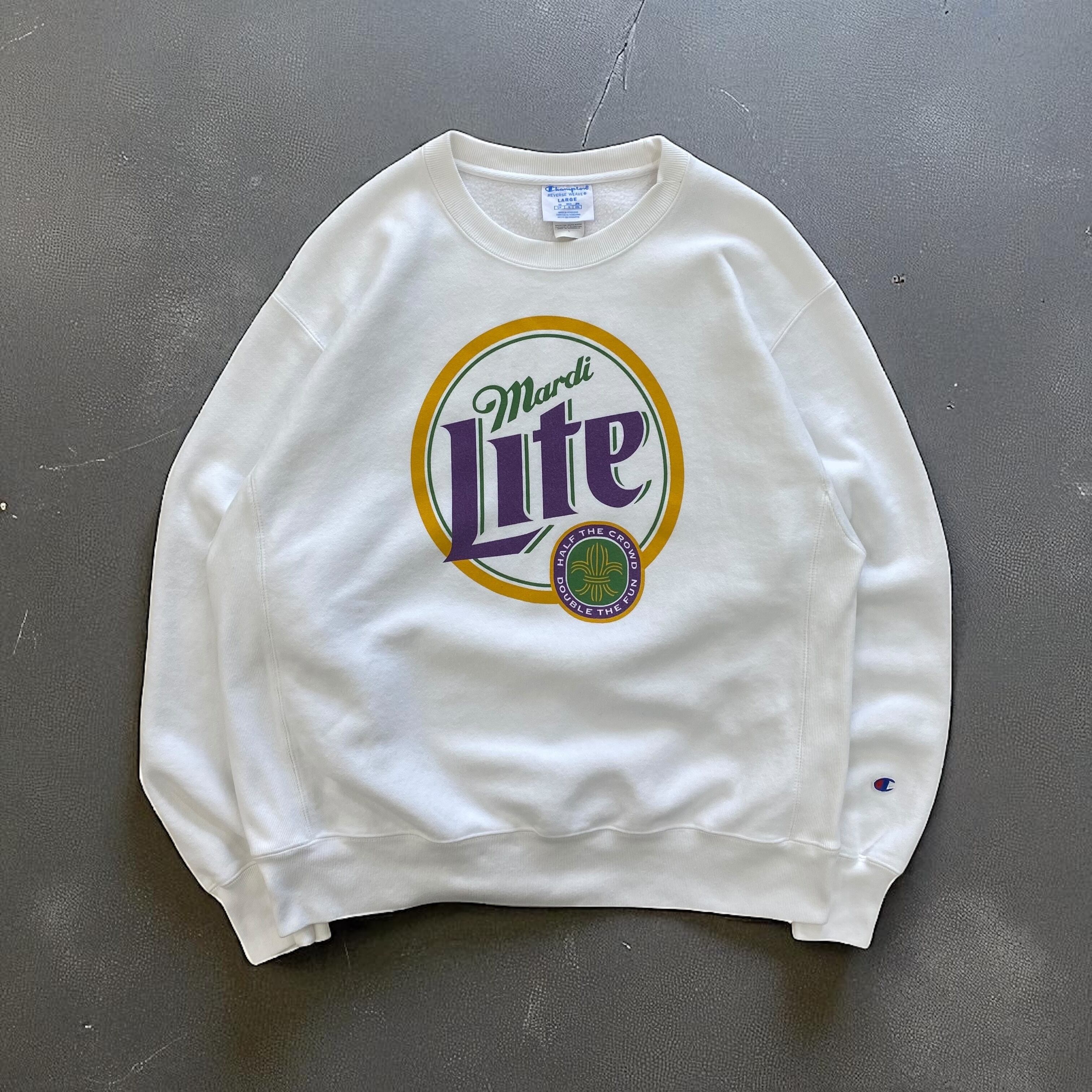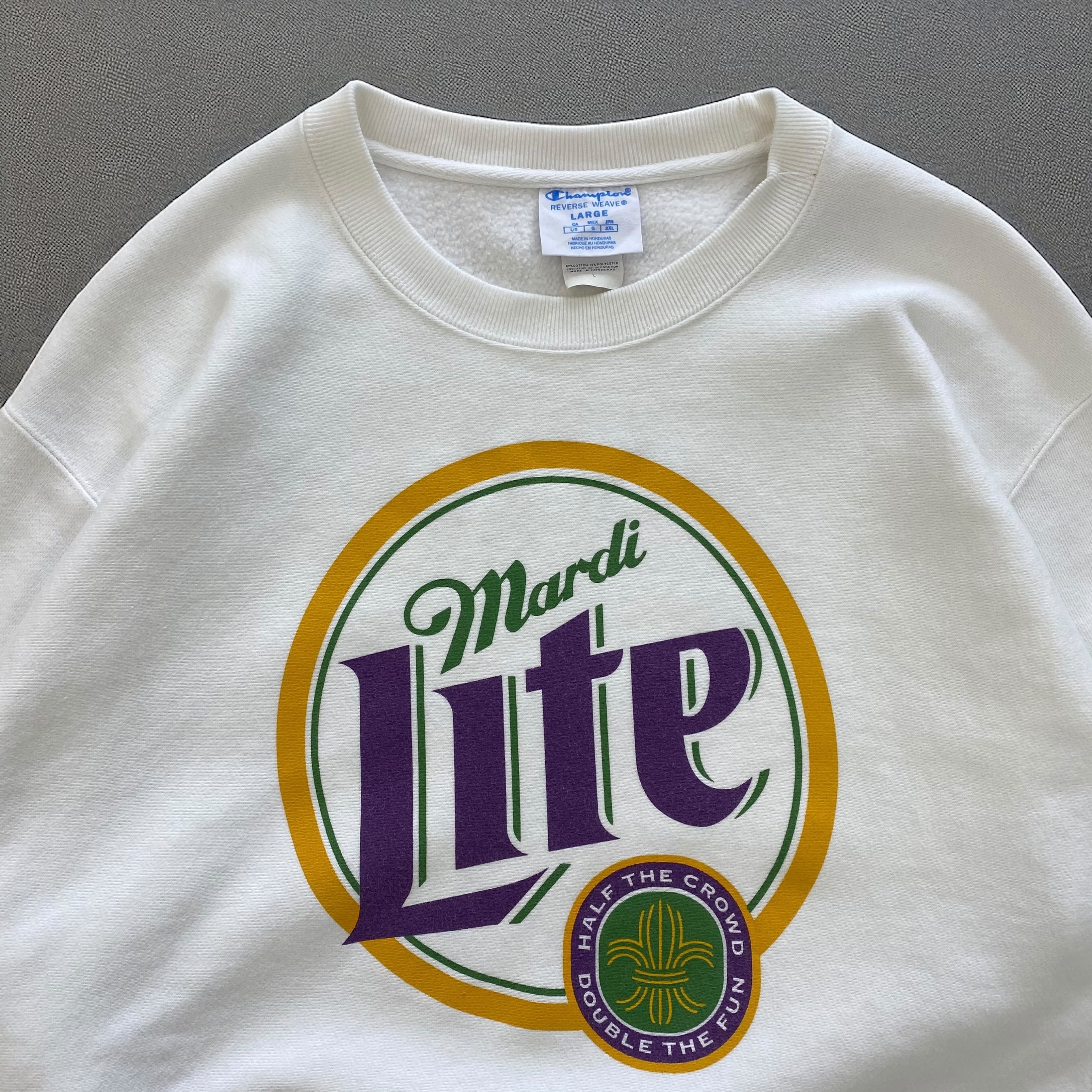 Champion リバースウィーブ スウェット トレーナー クルーネック ストリート アメカジ 古着 ホンジュラス製 Mardi Gras Lite beer