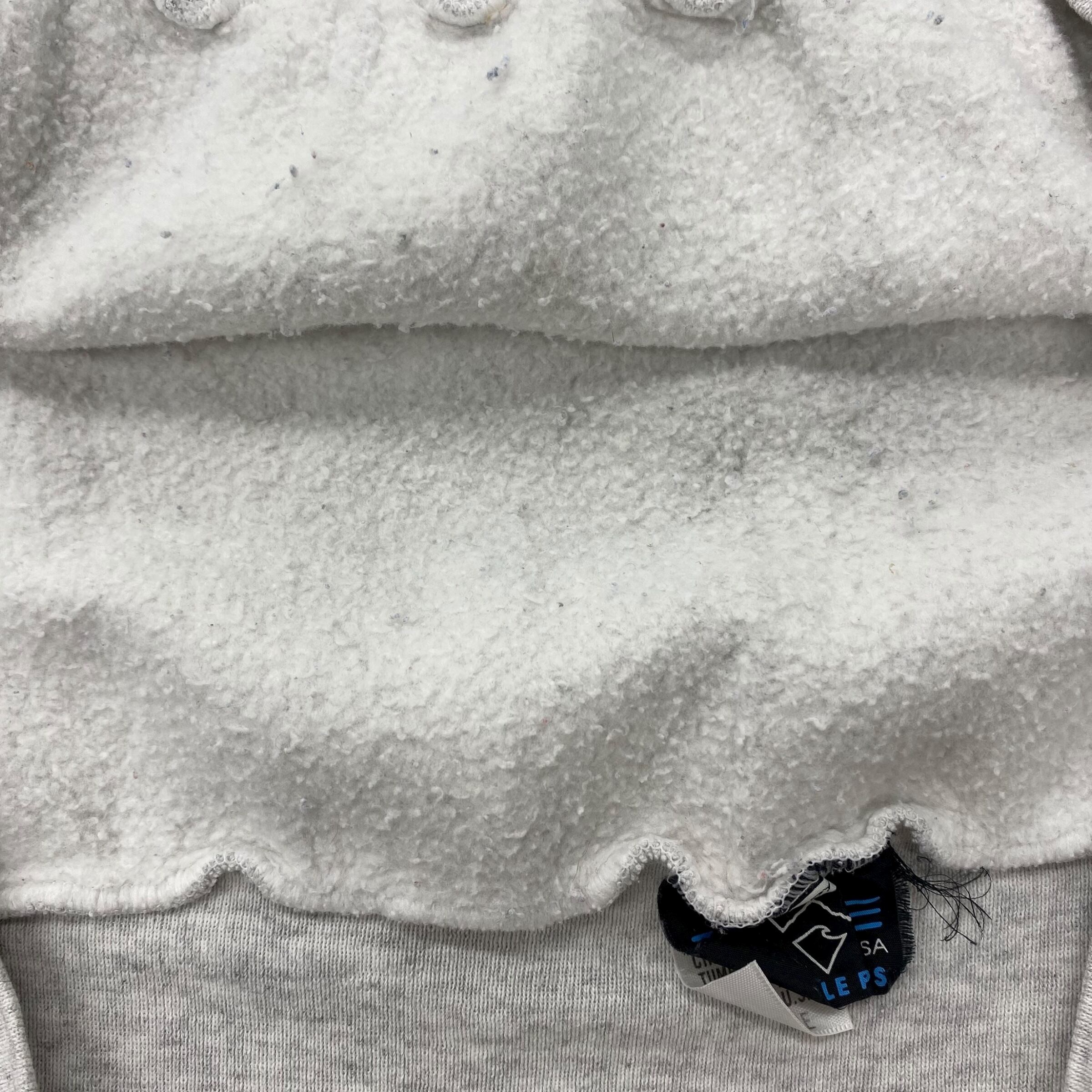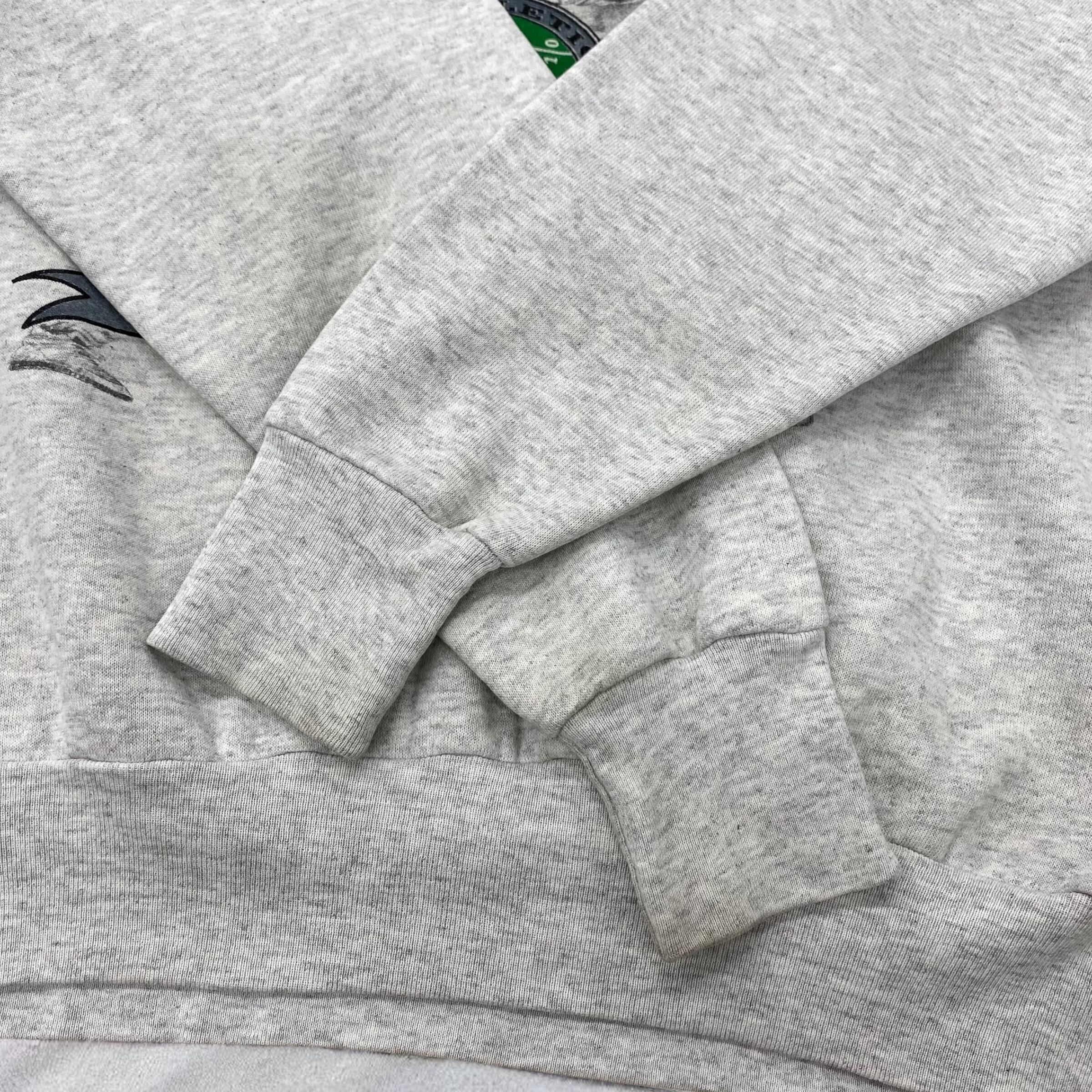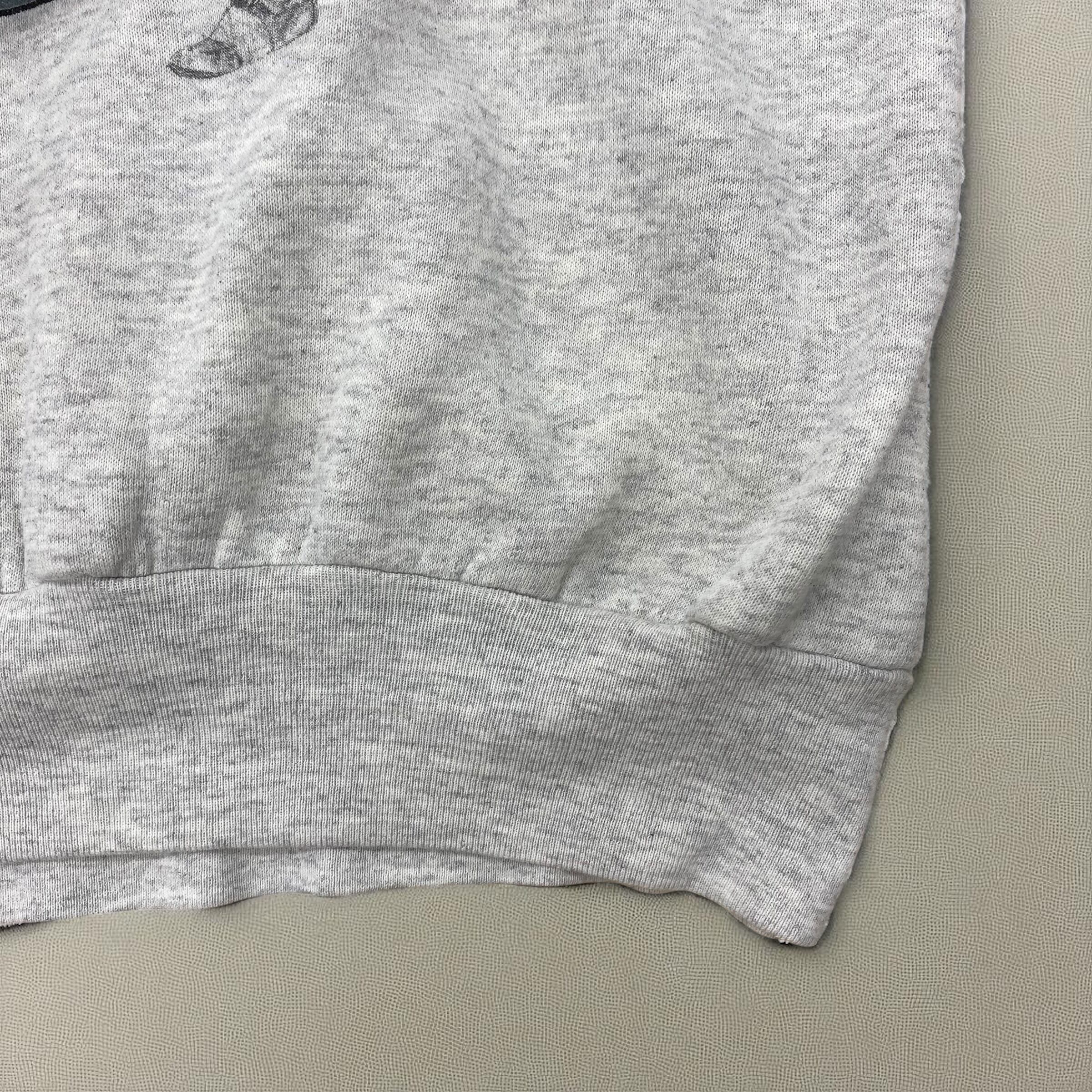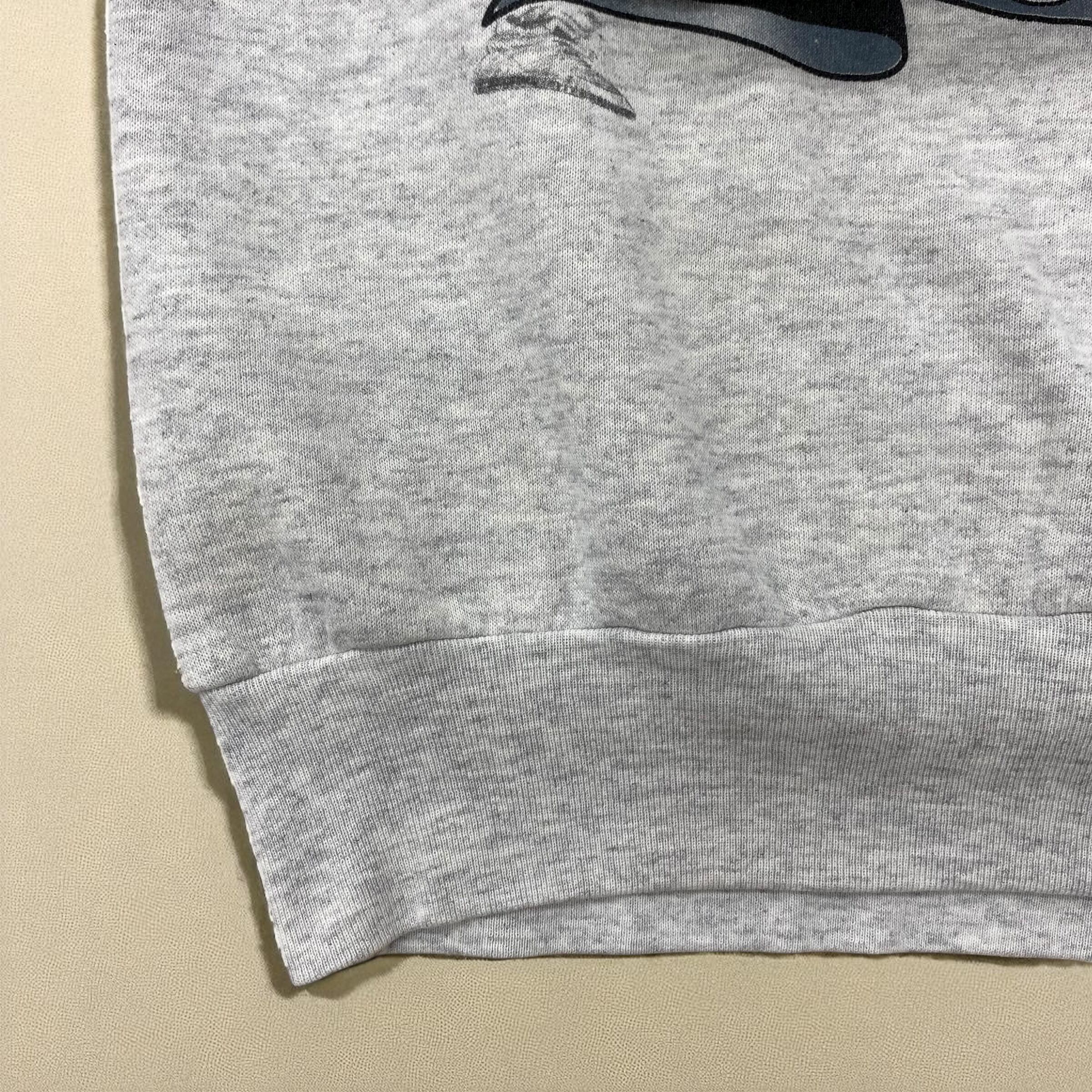 素材はコットンとポリエステルの混紡(50% COTTON, 50% POLYESTER)で、古着のスウェットらしい程よい肉感と、ふんわりとした着心地が楽しめます。肩の縫い目付近に小さなほつれがありますが、それも古着ならではの味として捉えられる範囲です。