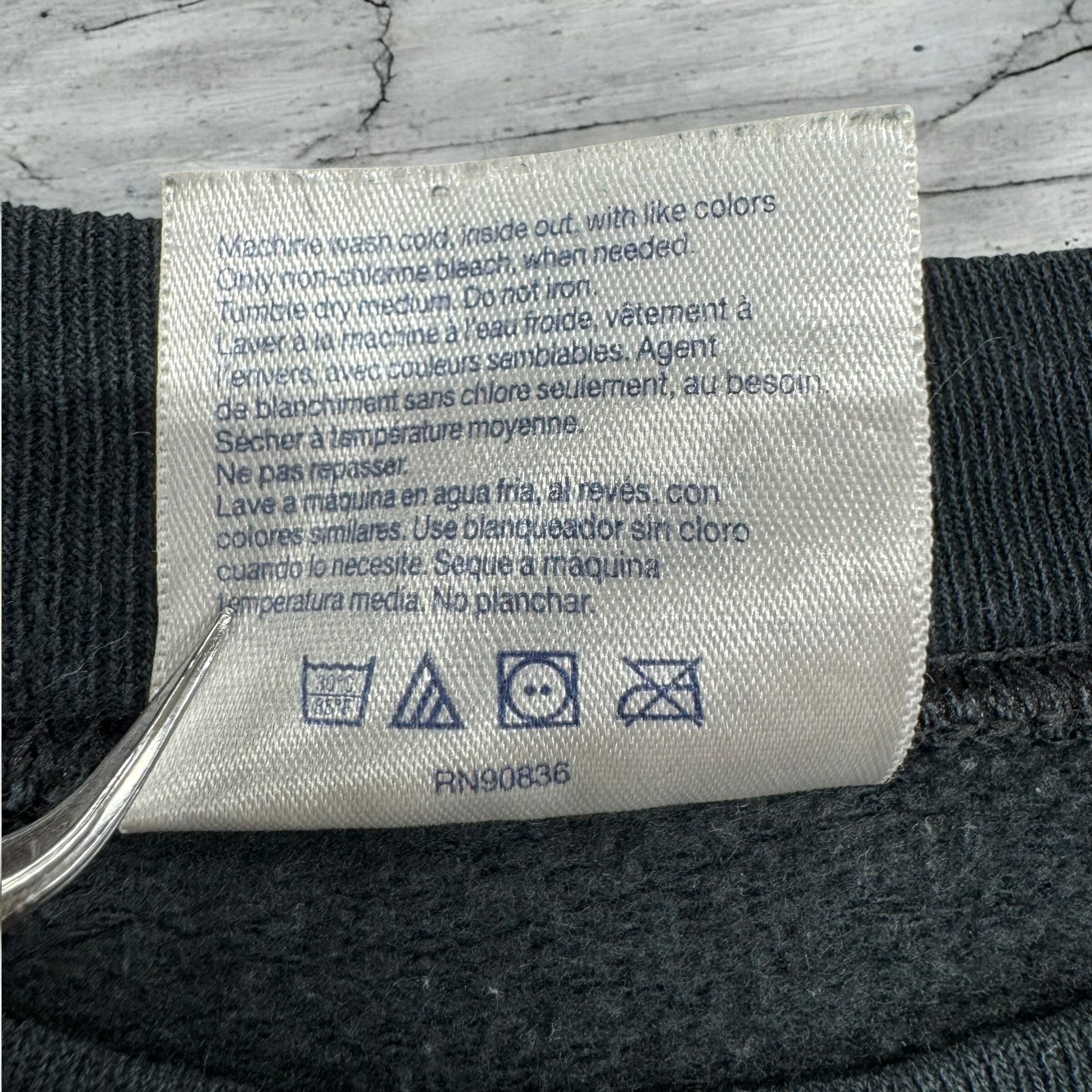 色は使いやすいブラック(着用や経年によりチャコールグレーに近い色味にフェードしています)で、表記サイズはADULT L/G/G(USサイズのL、日本サイズでL〜XL相当)です。アメカジ、ワークスタイル、モーターカルチャーが好きな方におすすめの一枚です。
