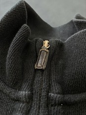 ハイネックで首元まで暖かく、ジッパーの引手にはレザーが使われており、細部にまでこだわりが感じられます。