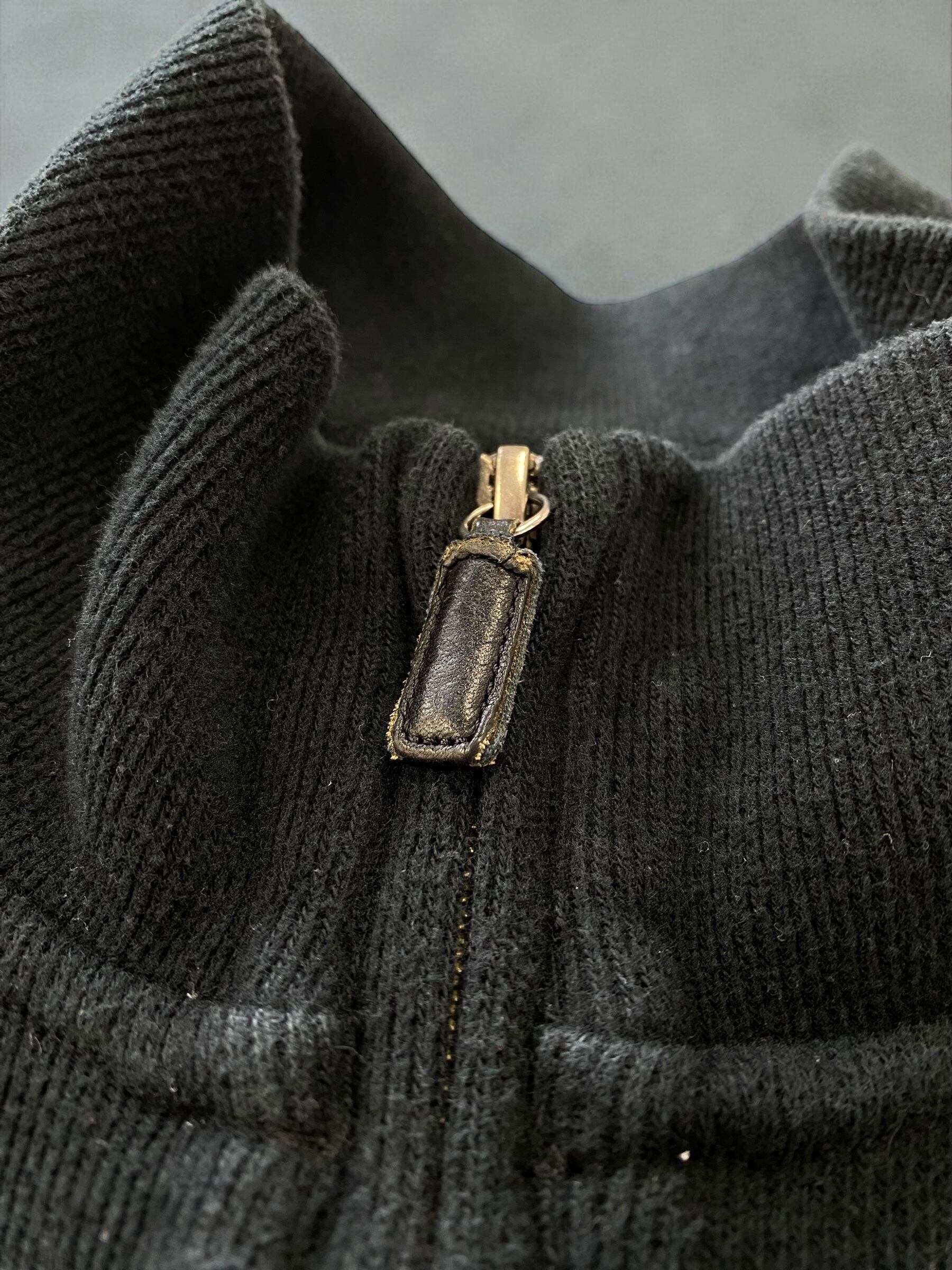 POLO by Ralph Lauren コットン ハーフジップ リブニット プルオーバー M 黒 赤ポニー