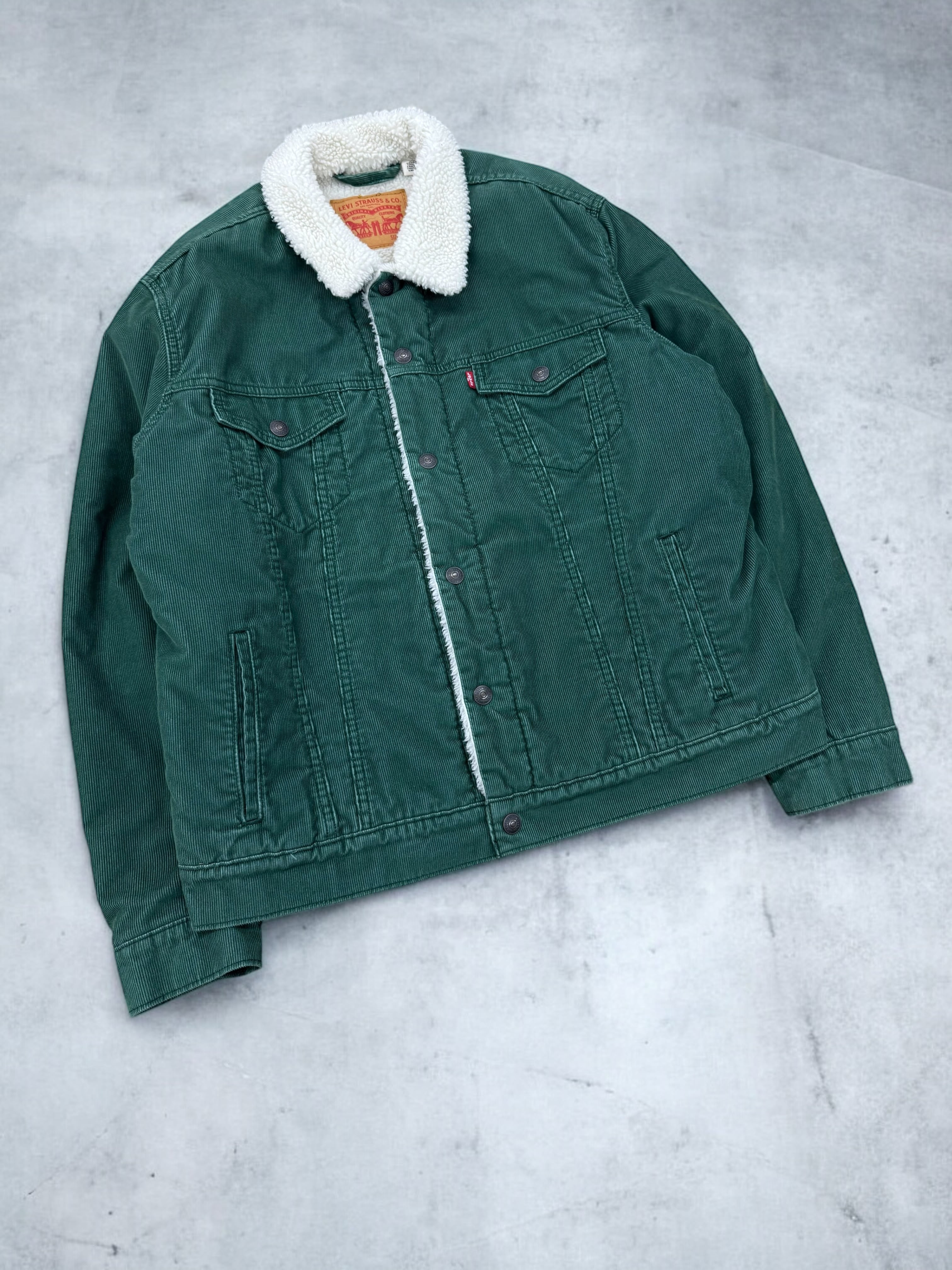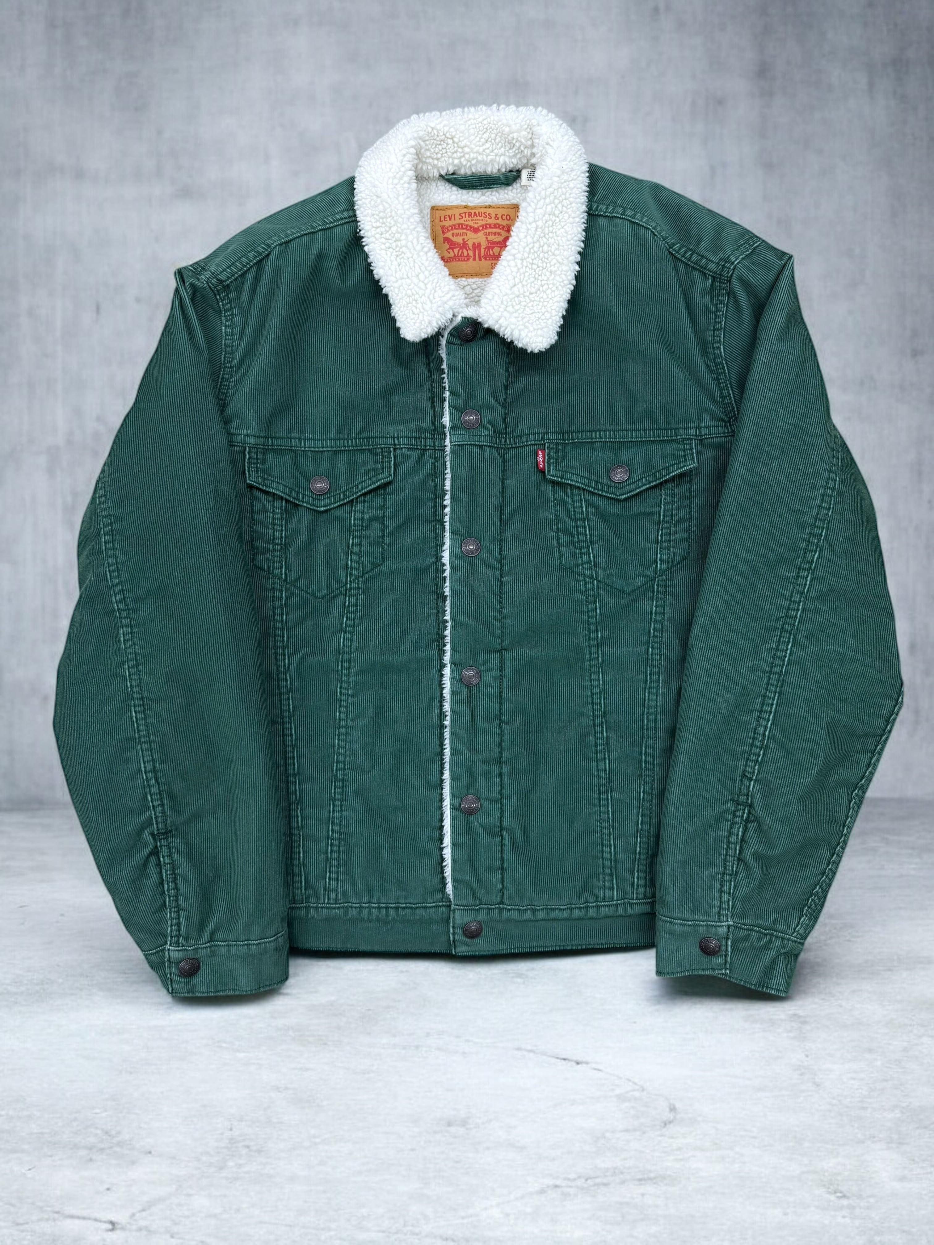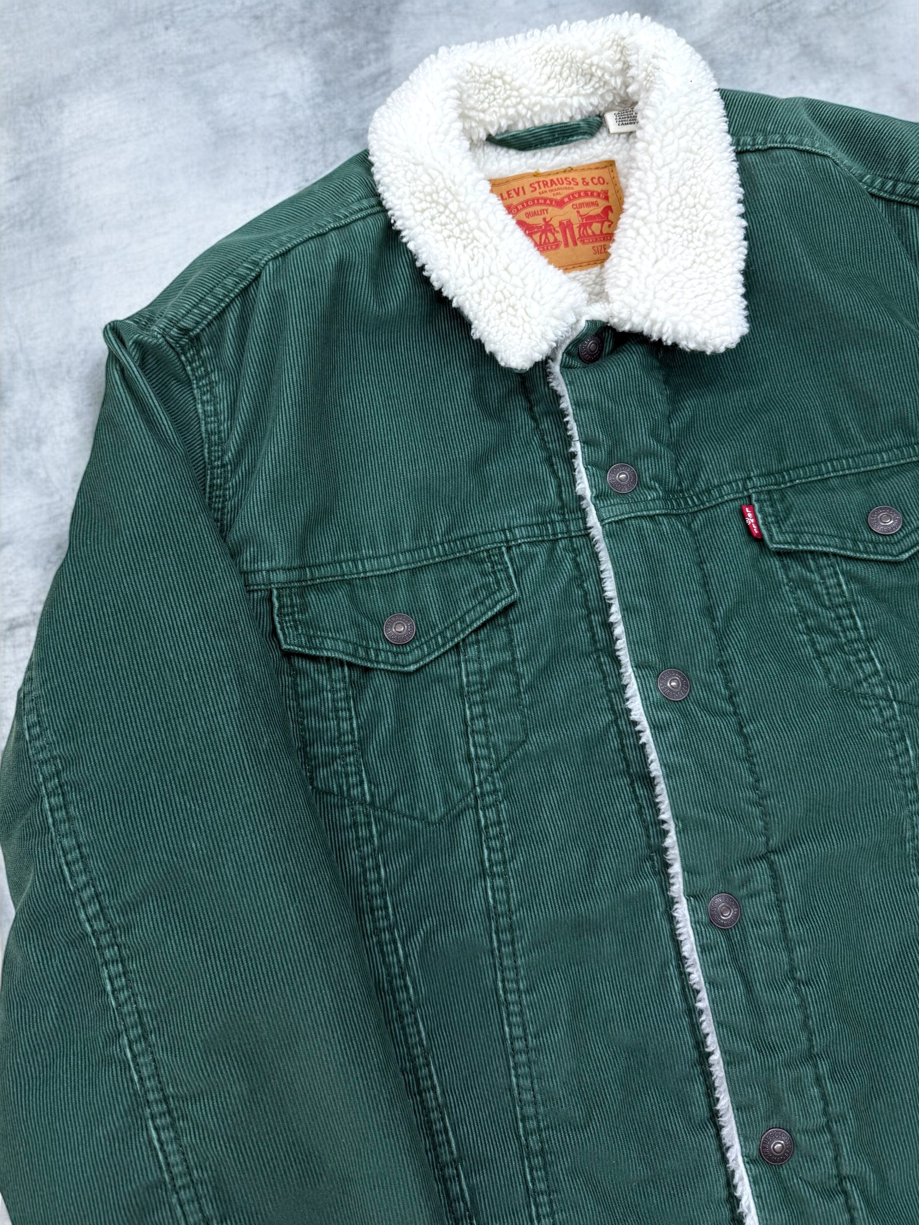 Levi's リーバイス 裏ボア コーデュロイ シェルパ トラッカージャケット 緑 L アメカジ