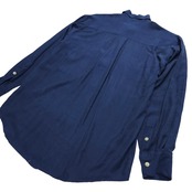 シンプルだけど個性的なシルクシャツ。シルク100%素材で上品な光沢感が魅力的です。さらにダメージ加工が施されており、洗練されたカジュアルスタイルを演出します。ネイビーカラーは落ち着いた印象を与え、様々なコーディネートに馴染みます。