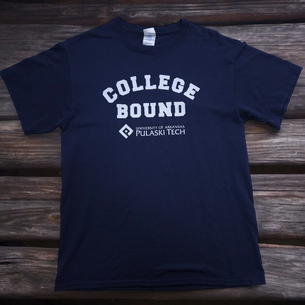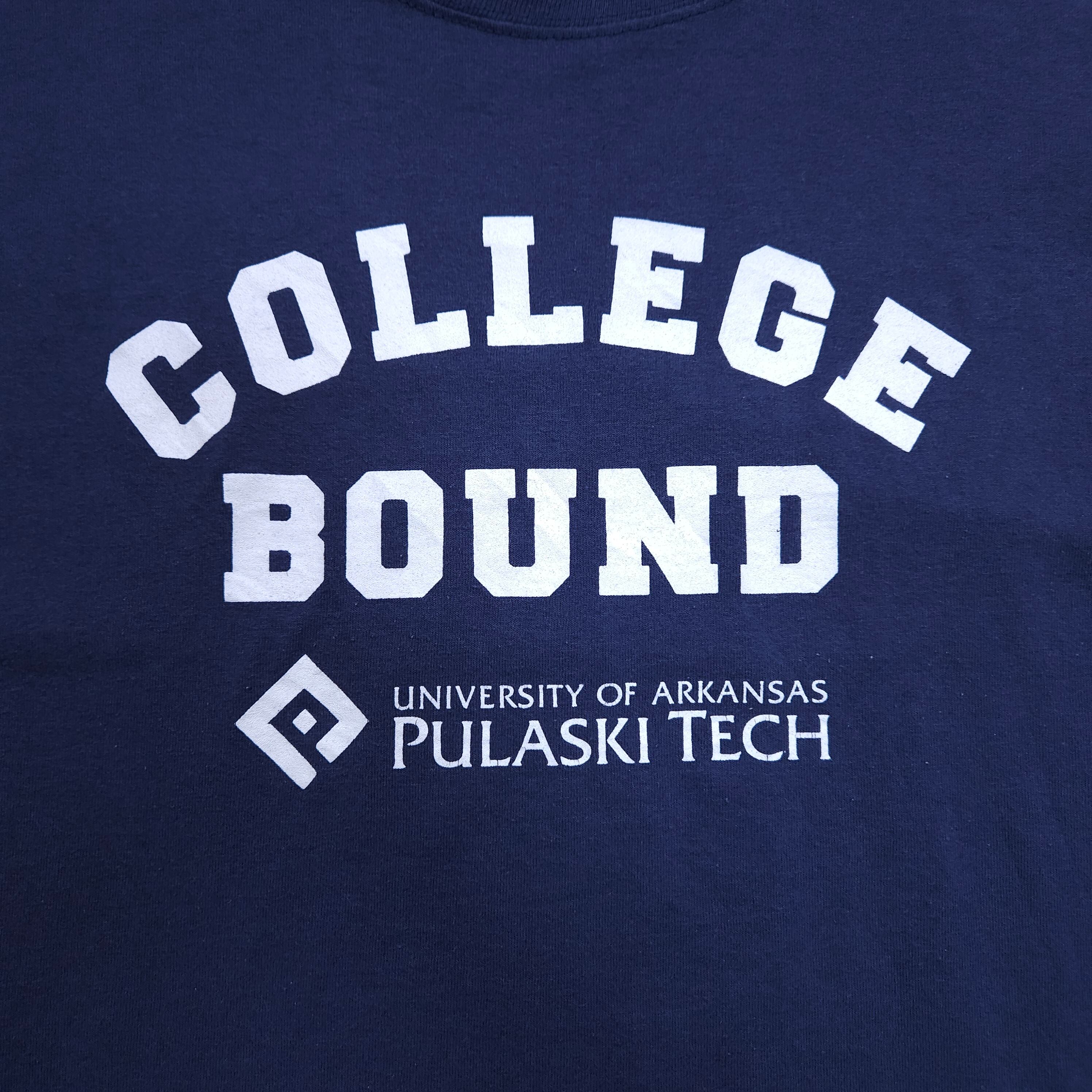 プリントTシャツ ネイビー Mサイズは、シンプルでありながら存在感のある一着です。古着のような風合いと、"college bound"の文字がプリントされたデザインは、カジュアルなスタイルにアクセントを加えてくれます。程よいサイズ感で、どんなボトムスとも好相性。