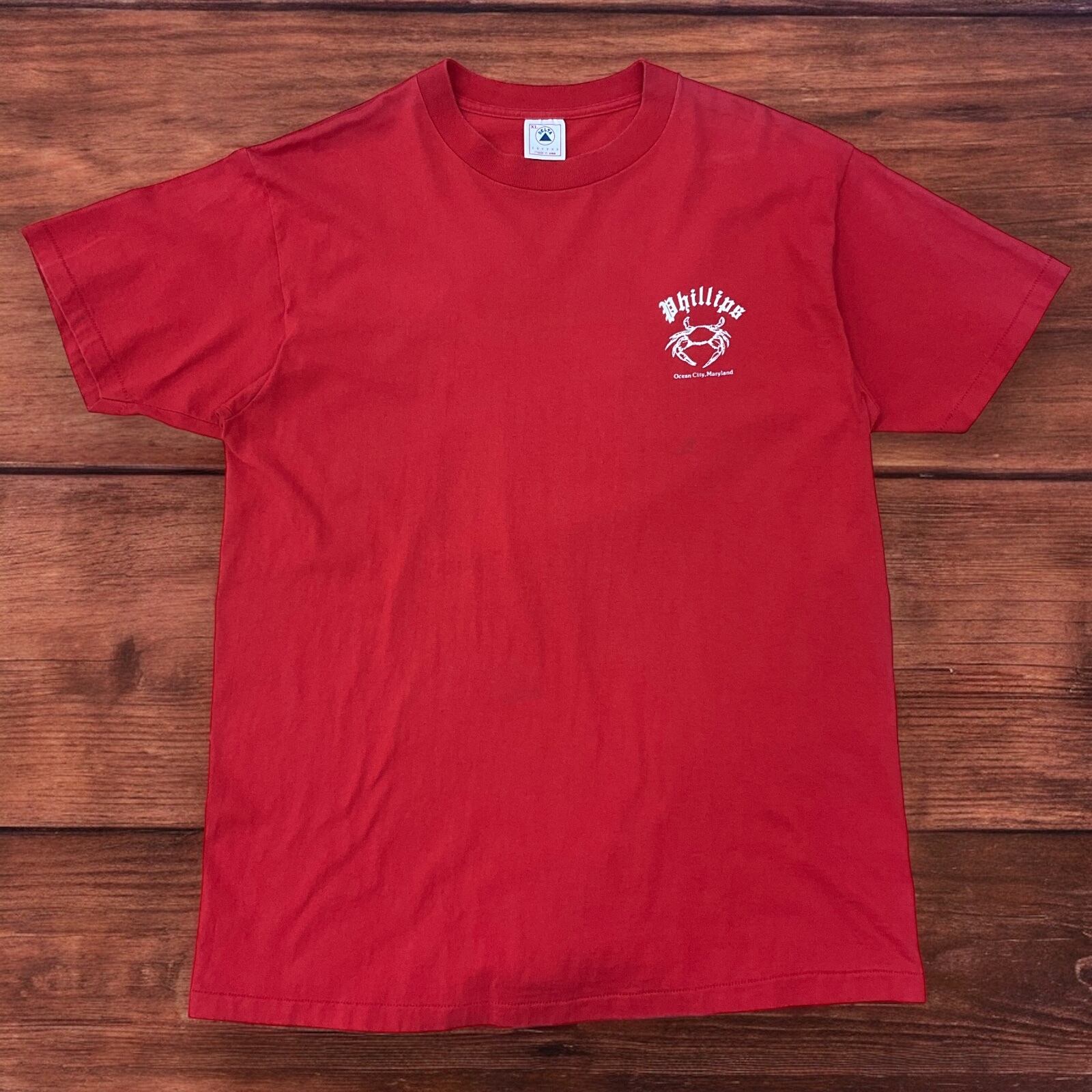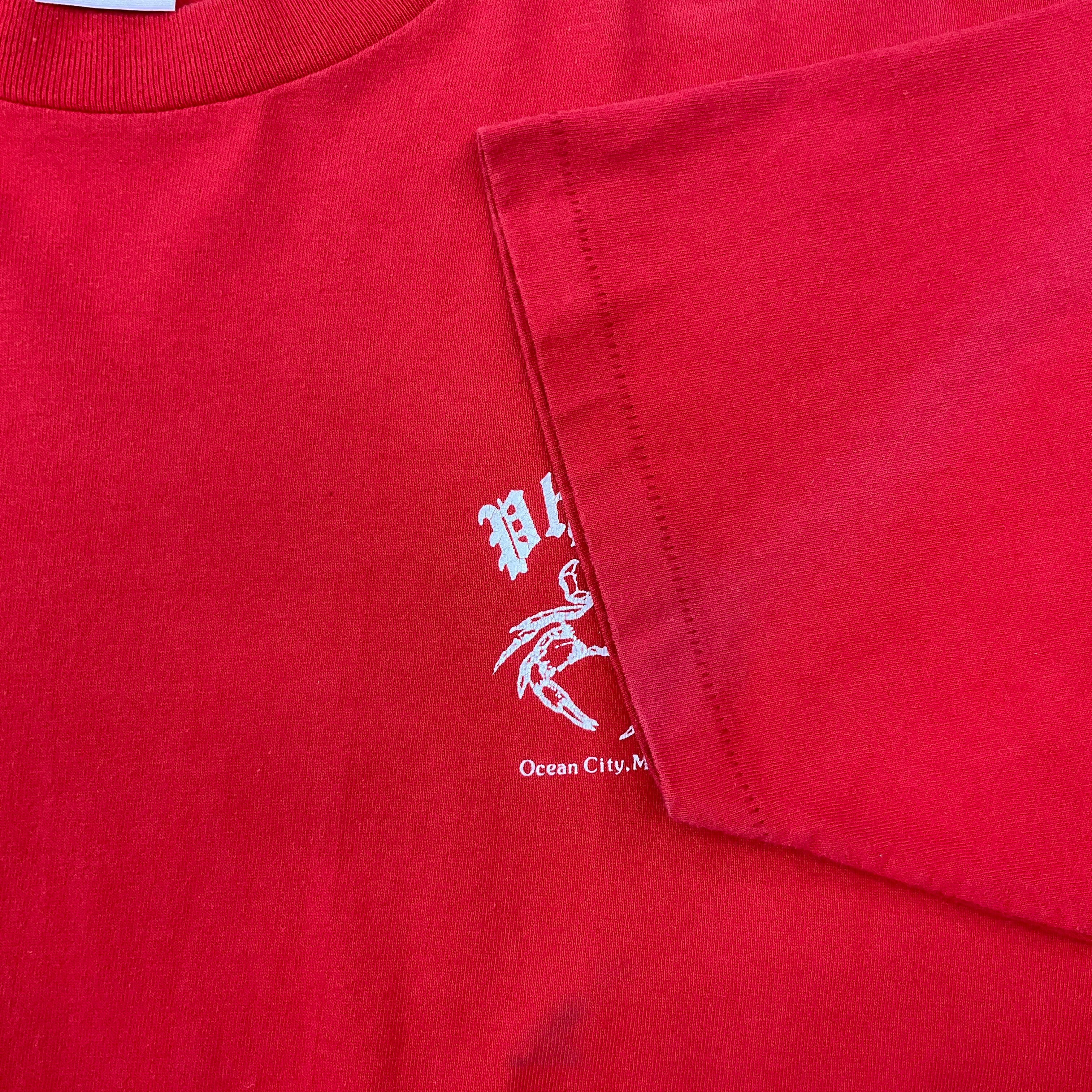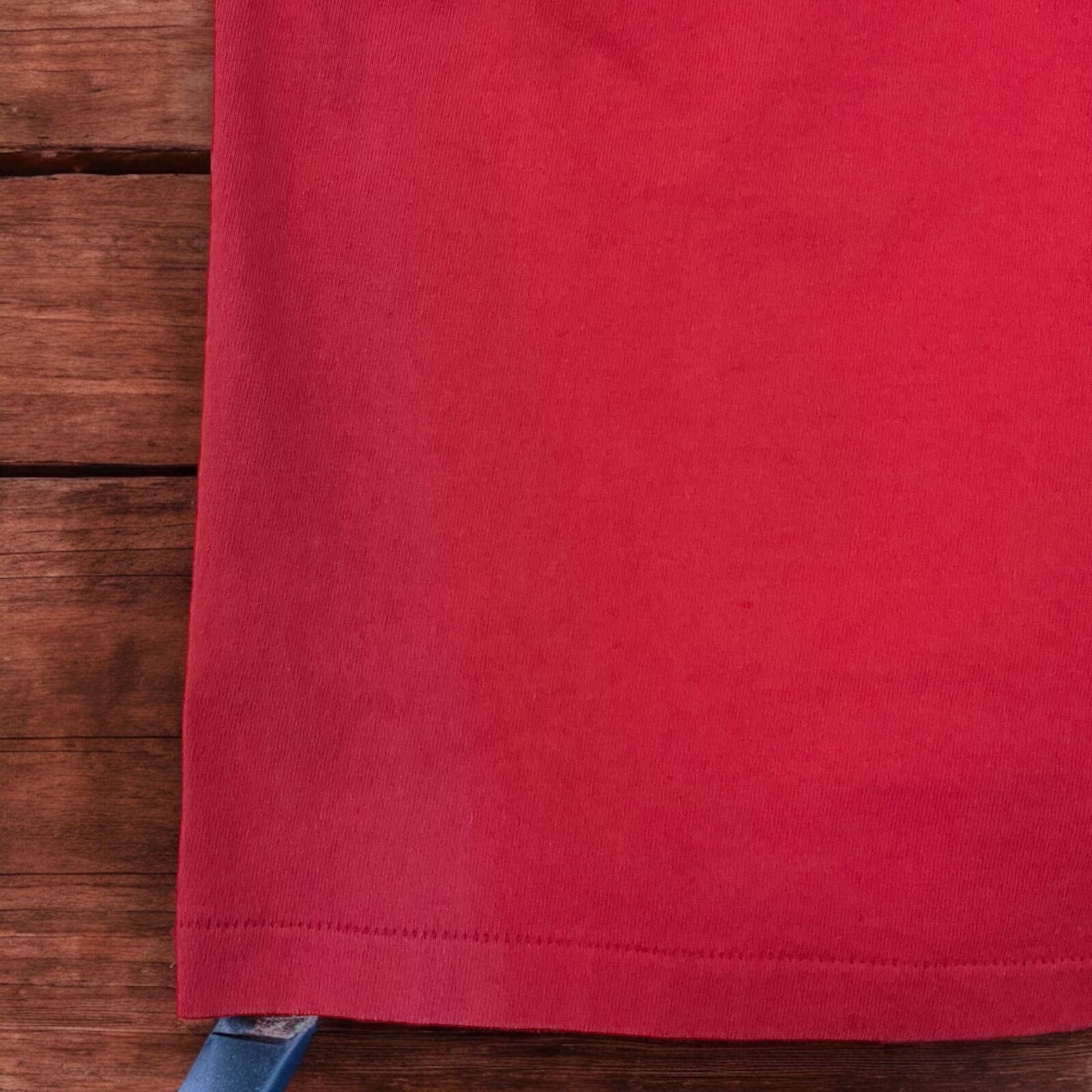 シングルステッチ仕上げでUSA製の本格派アイテム。ヴィンテージ感漂うレッドカラーがおしゃれポイント。古着好きや90年代ファッションに憧れる方にぴったりの一枚です。