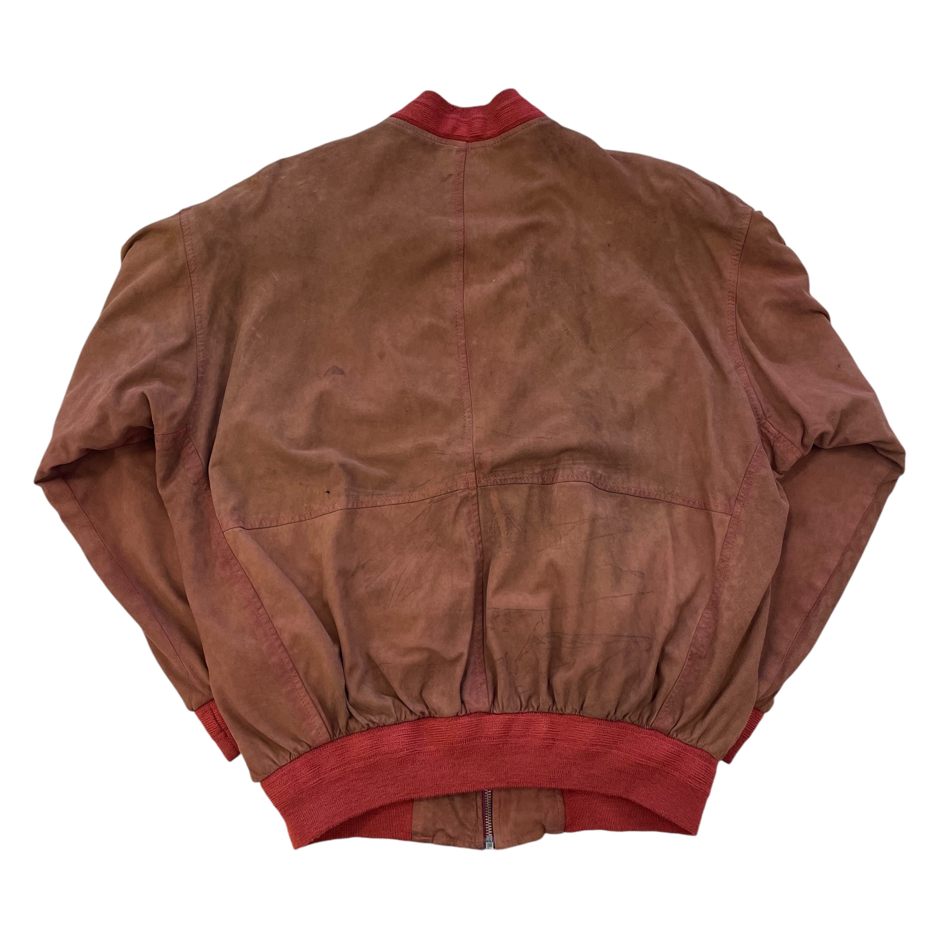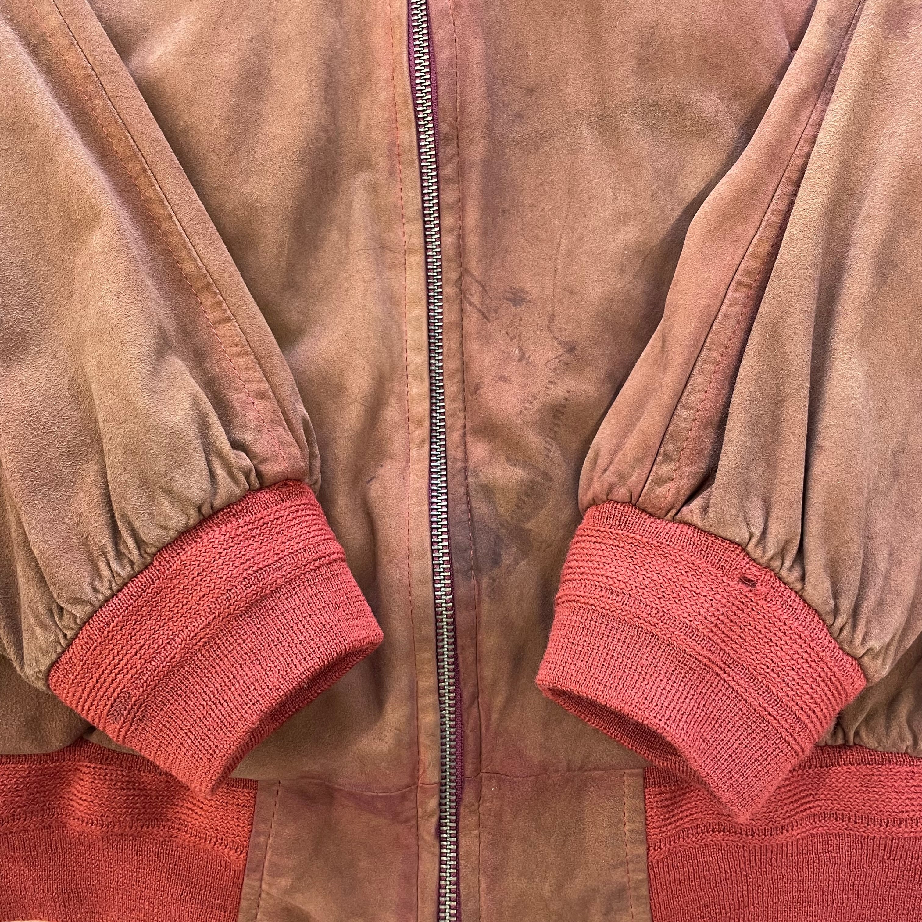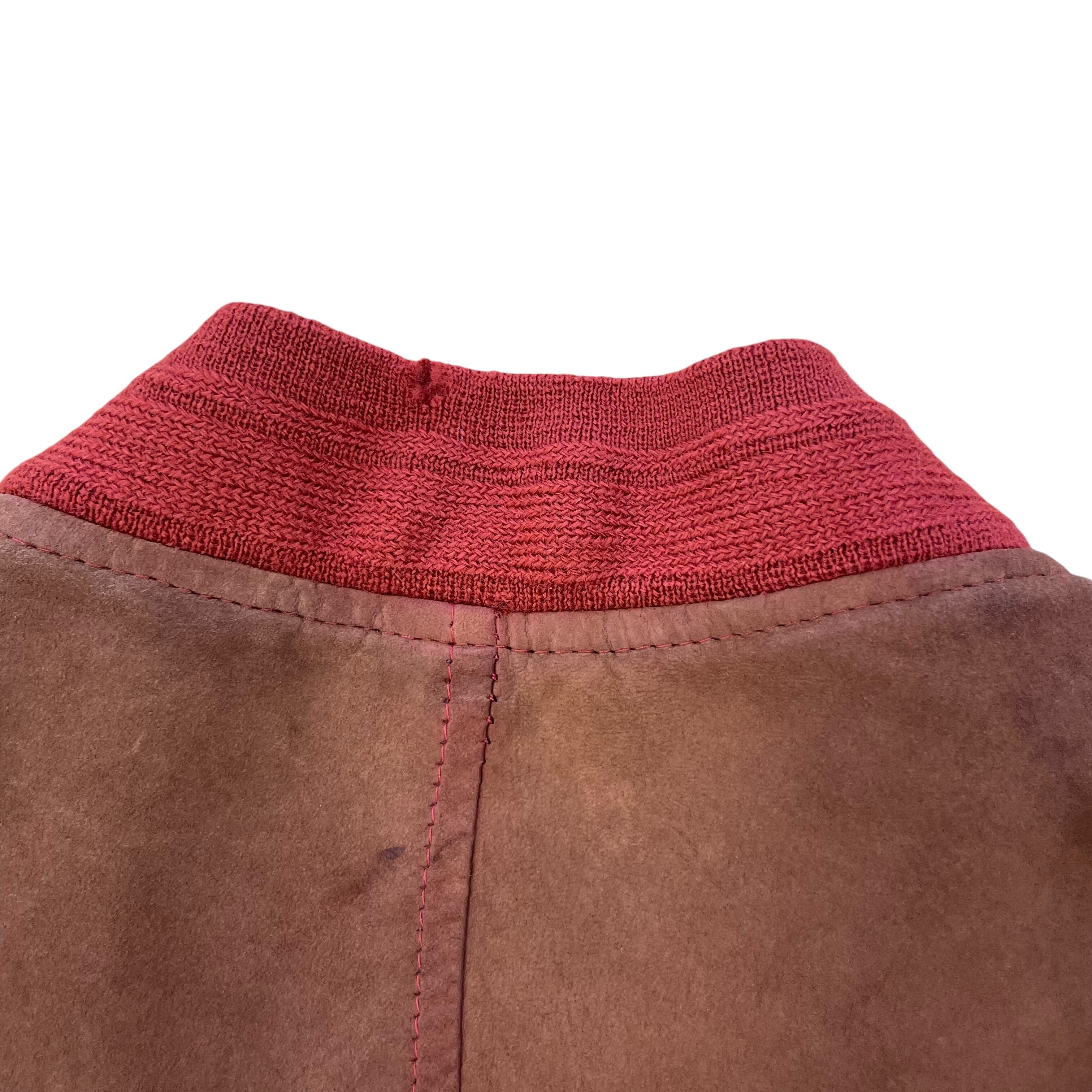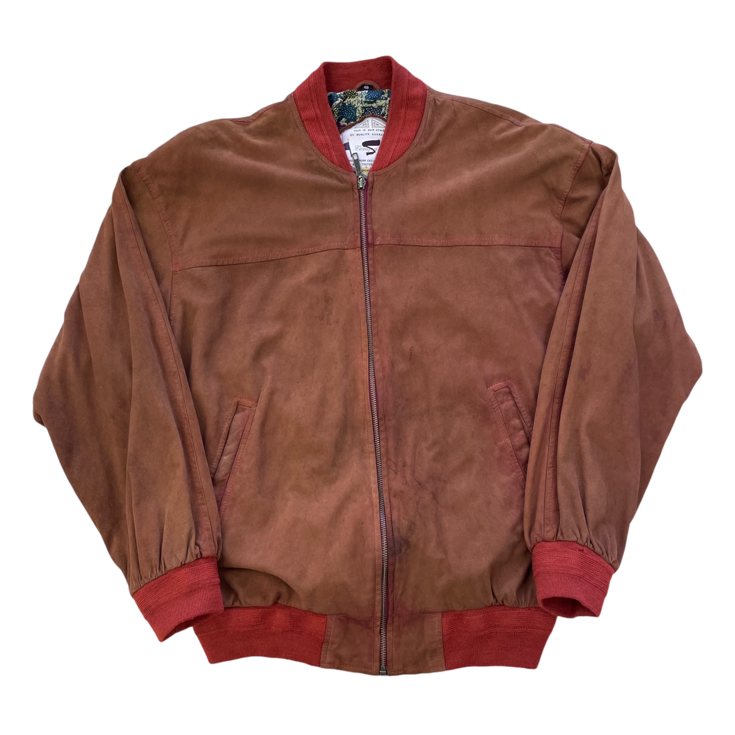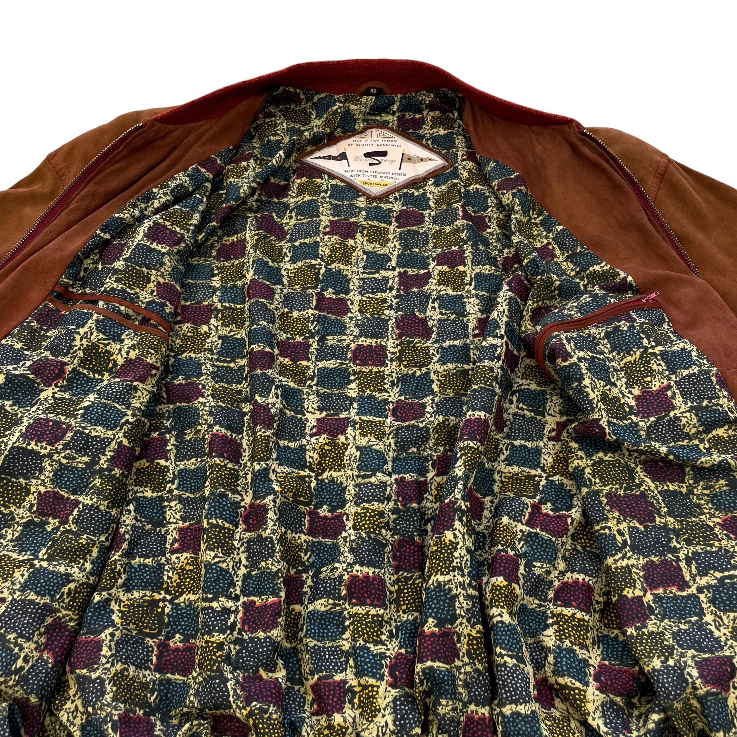 スエードレザージャケット サイズ48 赤茶色 裏総柄